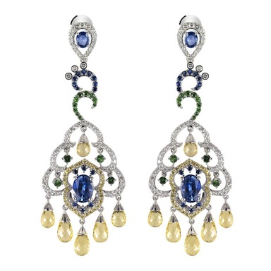 Released in limited numbers, the items of the new collection are all realized in 18K white gold and set with diamonds, citrines, sapphires, tourmalines and peridots. Matched in different combinations, the colourful stones create a graceful medley of bright white, deep blue, dark green, warm red, pink-violet and golden yellow, recalling the tones of the peacock’s plumage.
