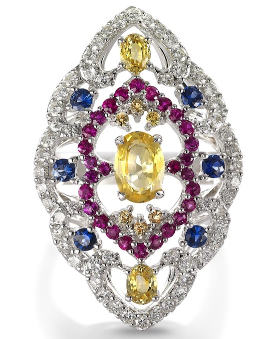 The new range of precious jewellery combines diamonds and multi-coloured precious gemstones and boasts a sophisticated chromatic effect. The new Peacock collection is perfect to complement and adds a touch of colour to any wardrobe during special Ramadan occasions.
