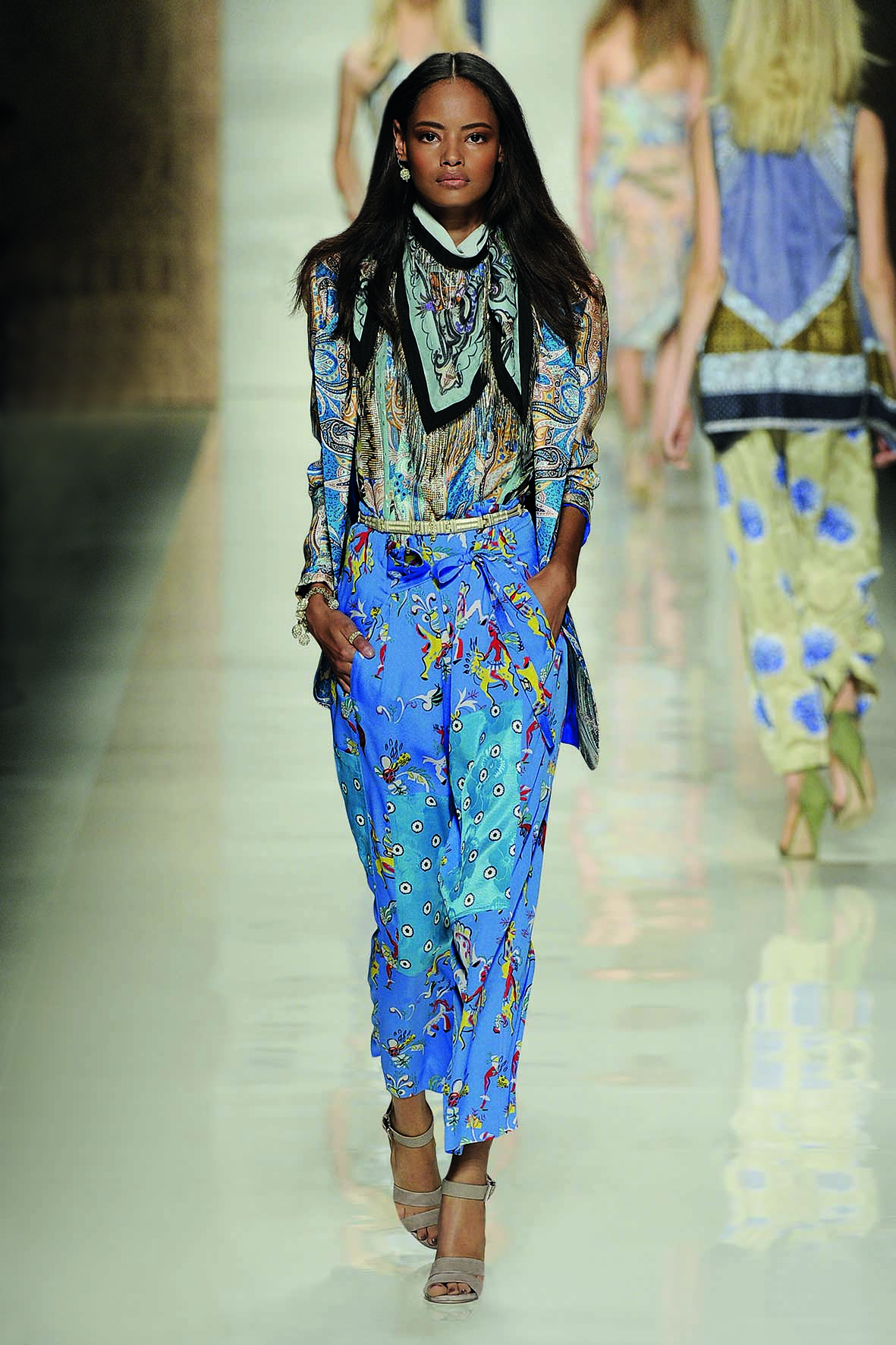 Etro’s unique assembly of places and times creates a voyage that is layered with exoticism, femininity and luxury, and that literally shines with summer’s optimism….looking at a few more clothes of what is in the new collection, I would say some of the pieces would work for different occasions, depending on the accessories and layers added.