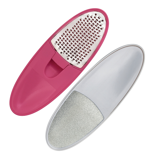 As first of its kind, the dual sided foot file boasts an ingenious magnetic design that holds both parts together. It’s uniquely shaped built-in case is contoured for excellent ergonomic function, comfort and control, as well as convenient, compact storage. Both parts fit together effortlessly to keep the tools clean and protected and always accessible for pedi pampering at home or on-the-go.