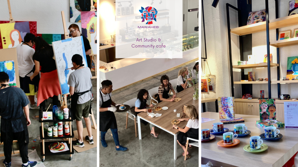 At the studio, People of Determination have the opportunity to explore the world and become independent members of our society through the medium of art and with life-skills training by our professional team of instructors. It is a positive, safe and creative environment to grow and develop. At the next-door community café, Mawaheb celebrates diversity via a co-working place where one can inspire and get inspired. It is perfect for inclusive events, coffee mornings and activities:
