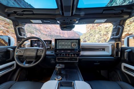 Gone are the boxy, utilitarian looks of yesteryear that we were used to when we went for meetings in the orange office Hummer. The new Hummer EV ushers in a sculpted, futuristic silhouette while still channeling the iconic Hummer attitude. Up front, a glowing HUMMER EV light bar leads the charge alongside IntelliBeam LED headlamps and a power-operated hood. The Infinity Roof with removable sky panels adds an open-air thrill that is perfect for cruising under the Dubai skyline. Rugged details like 18” black aluminum wheels with machined accents, full underbody armor, and extreme off-road components ensure it’s as ready for the desert dunes as it is for downtown.