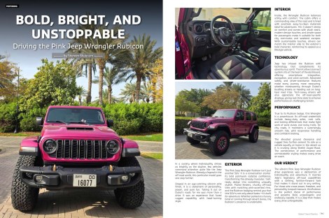 In a society where individuality shines as brightly as the skyline, few vehicles command attention quite like the Jeep Wrangler Rubicon. Already a legend in the off-road world, this particular model goes one step further. Draped in an eye-catching vibrant pink finish, it is a statement of personality, power, and pure fun. Taking it out on Dubai’s roads for me was more than a drive. It was an experience that fused rugged capability with head-turning style.